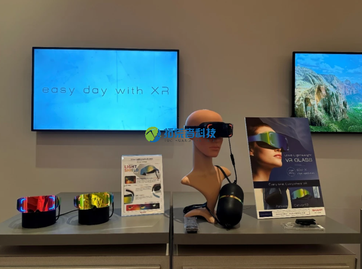 除了索尼,夏普和佳能两大日企也争相秀起了“肌肉”。佳能在CES2023上展示了其首款MR头显。该头显为分体式PC VR,需要连接电脑等计算单元使用,该MR设备采用Pancake光学,头环的显示部分可上掀,整体外观非常轻薄。在MR头显正前方,采用了4颗摄像头来实现Slam定位以及VST(全彩透视)。夏普展出了一款可连接智能手机的VR头显原型,该设备采用分体式设计,重量仅有175g,在显示方面,产品采用了Pancake光学方案,屏幕为分辨率单眼2K、刷新率120Hz的LCD屏幕。夏普称,产品配备液晶变焦镜头,可顺利获得改变聚合物镜头的厚度实现图像的快速聚焦,即使聚焦的位置移动,视角也保持不变,可有效降低晕动症的发生。