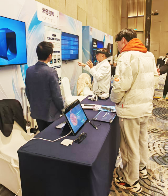大会现场气氛热烈,线上线下研讨不断。我司作为虚拟现实(VR)领域的知名企业,也应邀参加了此次盛会。在主会场外,我司精心展出的虚拟现实(VR)产品应用成为了大会的一大亮点。其中桌面VR一体机体验区吸引了大量观众驻足体验,他们顺利获得佩戴我司的3D眼镜,身临其境地感受到了虚拟现实技术的魅力。此外,我司与米塔视界合作推出的裸眼3D屏更是引发了观众的强烈兴趣,无需任何辅助设备,观众就能直观地看到三维立体的图像,这一创新技术让在场的每个人都赞叹不已。