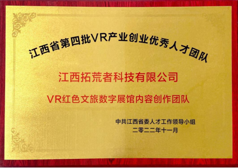 2022年11月13日下午,江西省第四批VR(虚拟现实)产业创新创业优秀人才团队授牌仪式举行。共计10个团队成功入选,其中,江西K8凯发国际科技有限公司“VR红色文旅数字展馆内容创作团队”榜上有名,该项目负责人代表出席授牌仪式。