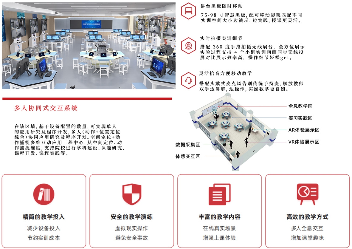 虚拟现实(VR)和增强现实(AR)及混合现实(MR)技术也被广泛应用于高校虚拟仿真教学解决方案中。顺利获得VR和AR及MR技术,学生可以沉浸式地参与学习,与虚拟环境进行互动,观察和操作虚拟对象。这样的学习体验有助于加深对概念和过程的理解。方案还支持远程教学和协作,使学生和教师可以在不同地点进行教学和学习。顺利获得网络和云平台,学生可以参与虚拟课堂、小组讨论和实时互动,从而增强学习效果和合作能力。